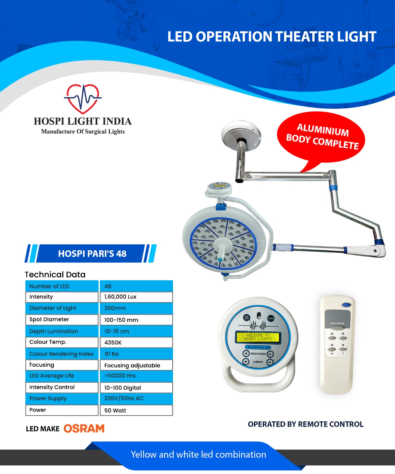 | 2. Design and engineering: The LED light fixtures are designed and engineered to meet specific requirements for brightness, color temperature, beam patterns, and other critical factors necessary for surgical lighting. |