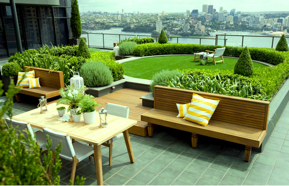 A roof garden is a garden on the roof of a building. Besides the decorative benefit, roof plantings may provide food, temperature control, hydro logical benefits, architectural enhancement, habitats or corridors for wildlife, recreational opportunities, and in large scale it may even have ecological benefits.